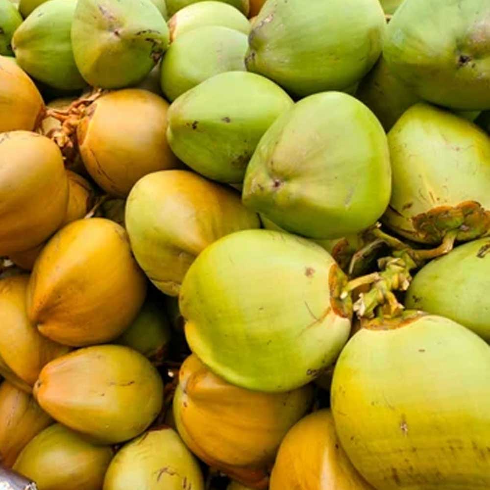 Tender Coconut or the young tough green Coconut offers a nutritious, pleasantly sweet water mostly known as coconut juice. It offers a jelly-like fresh white flesh with a very nutty sweet flavour.Coconut water is an excellent ingredient for mocktails and beverages. It is a hydrating drink and a summer favourite. Our selectively handpicked coconuts are assured of good quantity of water. Coconut water is very nutritious and provides health benefits to every age group and gender. It contains Vitamin C and is also great for glowing skin and healthy hair. That’s enough reason for the whole family to make coconut water a daily habit.